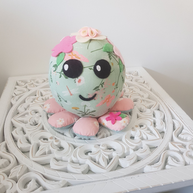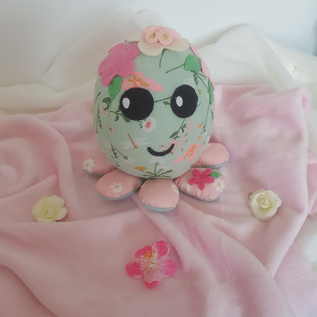 La Pieuvre Kawaii Printemps est un objet de décoration à poser sur une commode dans la chambre de votre enfant. Elle est originale, aux couleurs du printemps. Les beaux jours arrivent, c'est la saison des fleurs...idéale pour égayer une chambre d'enfant !